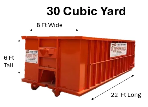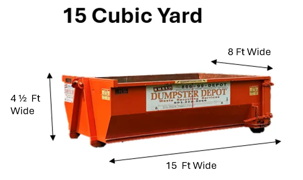 This word is used to describe size. I need a 15 cubic yhada. Here we say... I need a 15 cubic yard open top dumpster.